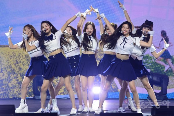 27일 그룹 첫사랑(CSR)이 서울 용산구 한남동 블루스퀘어 마스터카드홀에서 열린 첫 번째 미니앨범 ‘Sequence : 7272’ 발매 기념 프레스 쇼케이스에서 타이틀곡 ‘첫사랑(Pop? Pop!)’ 무대를 펼치고 있다.