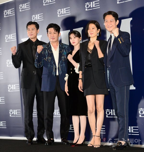 27일 서울 강남구 메가박스 코엑스에서 열린 영화 ‘헌트’ 시사회에서 정우성, 허성태, 고윤정, 전혜진,이정재가 포토타임을 갖고 있다.