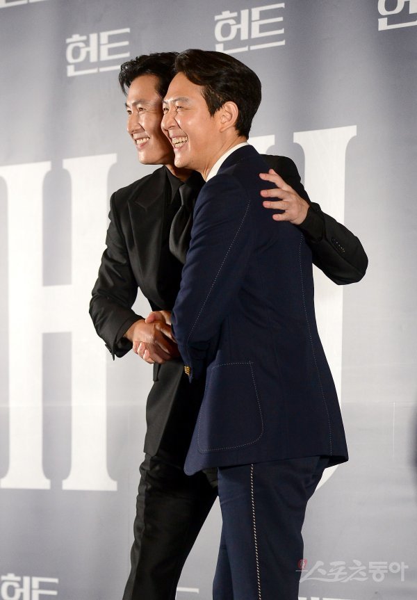 27일 서울 강남구 메가박스 코엑스에서 열린 영화 ‘헌트’ 시사회에서 정우성과 이정재가 포토타임을 갖고 있다.