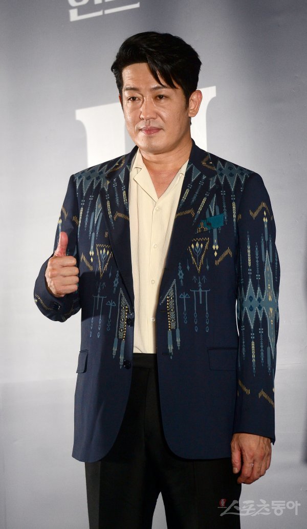 27일 서울 강남구 메가박스 코엑스에서 열린 영화 ‘헌트’ 시사회에서 허성태가 포토타임을 갖고 있다.