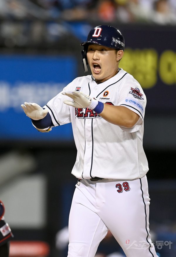 두산 벤치와 관중석에선 엄청난 함성이 터졌다. 역할이 제한된 상황, 단 한 번 그라운드를 밟고 최고의 결과를 만들어낸 김인태의 얼굴에도 미소가 가득했다.