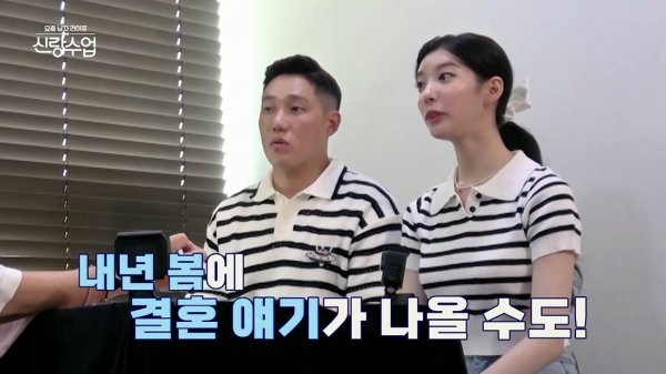 마지막으로, ‘신랑수업’ 공식 1호 커플 모태범♥임사랑은 커플티를 맞춰 입고 ‘아이스링크 데이트’를 즐겼다. 두 사람은 양 손을 맞잡고 커플 스케이팅을 하며 꽁냥꽁냥한 시간을 보냈다. 그러던 중, 모태범은 “앞으로 오랜 시간을 같이 지냈으면 좋겠다”면서 시계를 선물해 임사랑을 감동케 했다. 이를 본 홍현희는 “이건 거의 프러포즈급!”이라고 환호성을 질렀다.