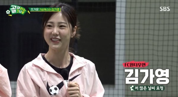 이날 김가영은 FC원더우먼 멤버들과 첫 상견례 자리에서 “축구 좋아하는 프리한 기상 캐스터 김가영”이라고 자신을 소개했다. 제작진과 사전 인터뷰에서 “일보다 운동을 더 많이 한다. 필라테스, 웨이트 트레이닝, 골프, 축구까지 하고 있다. 주말에는 풋살 동호회에도 나간다”라며 “ ‘골 때리는 그녀들’에 단비 같은 존재가 되고 싶다. 이 프로그램에 올인하고 싶다”라고 각오를 전했다.
