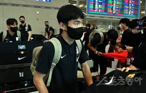 2022 EAFF E-1 챔피언십에서 일본에 패해 준우승을 차지한 한국 축구국가대표팀이 28일 인천국제공항을 통해 귀국했다. 축구대표팀 김문환이 출국장을 빠져나가고 있다.