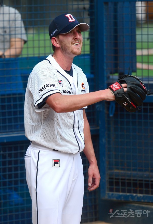 28일 서울 잠실야구장에서 ‘2022 신한은행 MY CAR KBO리그’ 롯데 자이언츠와 두산 베어스 경기가 열린다. 경기 전 두산 새 외국인 투수 브랜든 와델이 불펜 피칭을 하고 있다.
