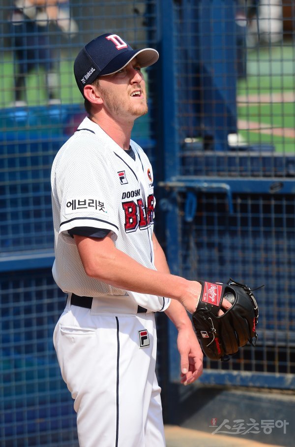 28일 서울 잠실야구장에서 ‘2022 신한은행 MY CAR KBO리그’ 롯데 자이언츠와 두산 베어스 경기가 열린다. 경기 전 두산 새 외국인 투수 브랜든 와델이 불펜 피칭을 하고 있다.