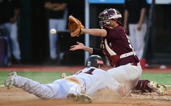 28일 경기도 수원KT위즈파크에서 열린 ‘2022 신한은행 SOL KBO리그’ KT 위즈와 키움 히어로즈의 경기에서 3회말 1사 3루 KT의 중전 적시타 때 키움 포수 이지영이 홈으로 파고든 3루주자에게 실점하고 있다.