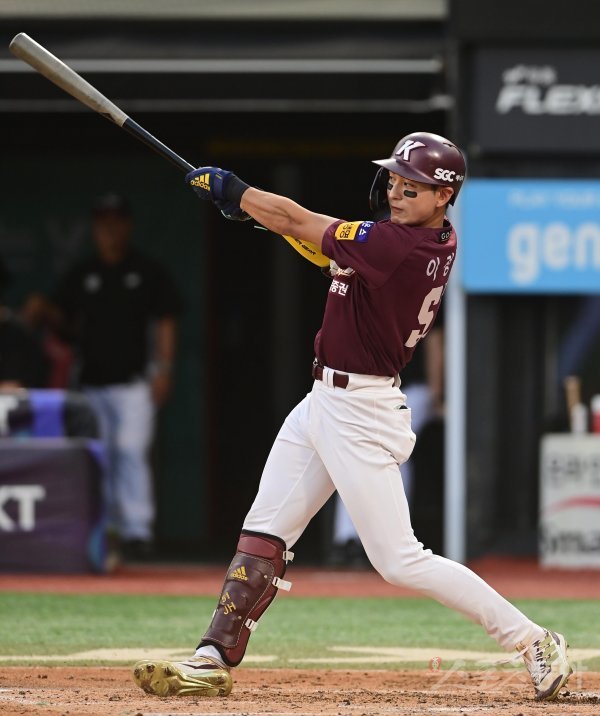 28일 경기도 수원KT위즈파크에서 열린 ‘2022 신한은행 SOL KBO리그’ KT 위즈와 키움 히어로즈의 경기에서 3회초 1사 키움 이정후가 우전 안타를 치며 최소경기, 최연소 1000안타를 달성하고 있다.