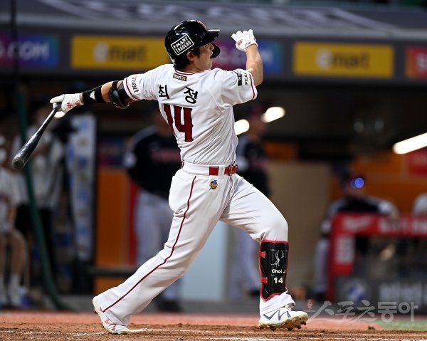 28일 인천 SSG 랜더스필드에서 ‘2022 신한은행 SOL KBO리그’ SSG 랜더스와 LG 트윈스의 경기가 열렸다. 6회말 무사에서 SSG 최정이 솔로 홈런을 쏘아 올리고 있다.