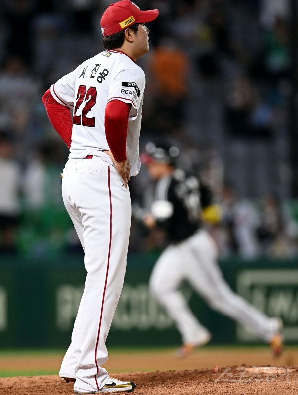 28일 인천 SSG 랜더스필드에서 ‘2022 신한은행 SOL KBO리그’ SSG 랜더스와 LG 트윈스의 경기가 열렸다. 9회초 2사에서 동점 홈런을 허용한 SSG 마무리 서진용이 아쉬워하고 있다.
