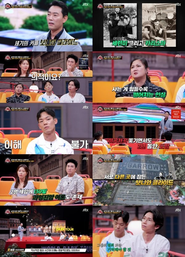 28일 방송된 JTBC ‘세계 다크투어’에서는 영화와 뮤지컬, 비욘세와 제이지, 현아와 장현승의 ‘내일은 없어’까지 수많은 대중 예술 작품의 모티브가 된 범죄자 커플 보니와 클라이드의 이야기가 그려졌다.