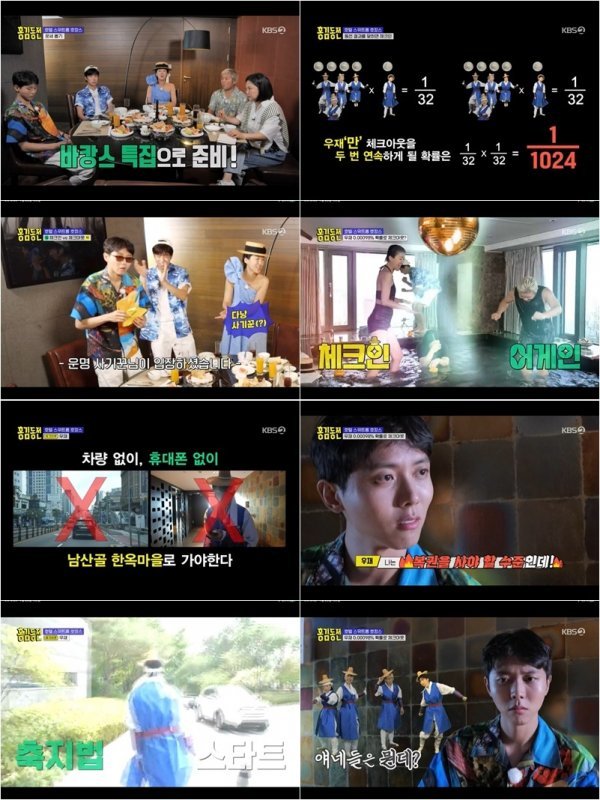 어김없이 동전던지기 시간이 돌아왔다. ‘앞면은 체크인, 뒷면은 체크아웃’ 앞면은 호캉스였지만 뒷면은 한여름의 남산 대장정이 걸려 있었다. 특히 고급호텔에서 시작한 오프닝에 멤버들의 불신은 쌓여만 가고, 동전던지기 전에 뽑은 ‘오늘의 운세’에서 우영이 ‘뒤를 돌아보지 말라’, 김숙은 ‘모든 승패는 한발 차이’, 주우재는 ‘스스로를 믿어라’, 홍진경은 ‘편견을 버려라’, 조세호는 ‘너무 무리하면 다친다’를 뽑자 불안감은 더욱 높아만 갔다.