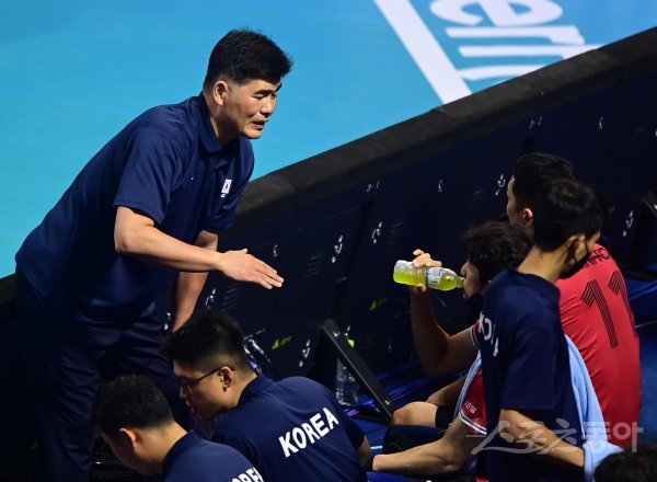 31일 서울 잠실학생체육관에서 열린 ‘서울 2022 국제배구연맹(FIVB) 발리볼챌린저컵’ 한국과 체코의 3, 4위전 경기에서 한국 임도헌 감독이 1세트를 승리한 후 선수들에게 작전 지시를 하고 있다.