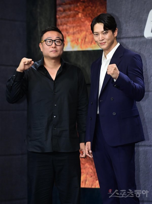 정병길 감독, 배우 주원이 2일 서울 종로구 JW메리어트동대문스퀘어서울에서 열린 넷플릭스 시리즈 ‘카터’ 제작보고회에서 포즈를 취하고 있다.