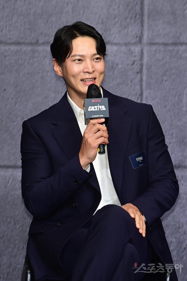 배우 주원이 2일 서울 종로구 JW메리어트동대문스퀘어서울에서 열린 넷플릭스 시리즈 ‘카터’ 제작보고회에서 진행자의 질문에 답하고 있다.