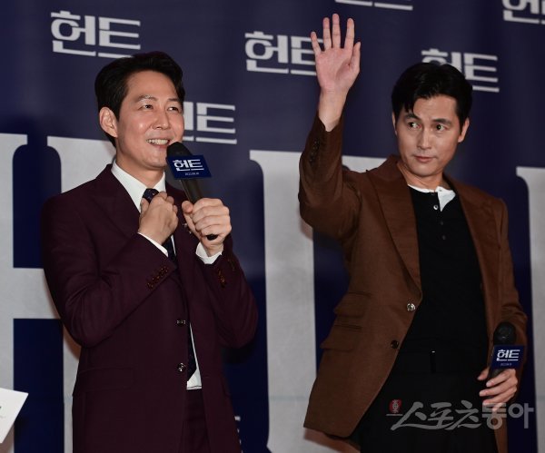 배우 이정재, 정우성이 2일 서울 강남구 삼성동 메가박스 코엑스점에서 열린 영화 ‘헌트’ 쇼케이스에서 인사를 하고 있다.