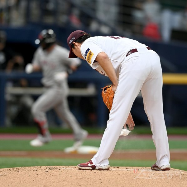 2일 서울 고척스카이돔에서 ‘2022 신한은행 MY CAR KBO리그’ SSG 랜더스와 키움 히어로즈 경기가 열렸다. 키움 선발 정찬헌이 3회초 1사 1,2루 SSG 최정에게 좌중월 스리런 홈런을 허용하고 있다.