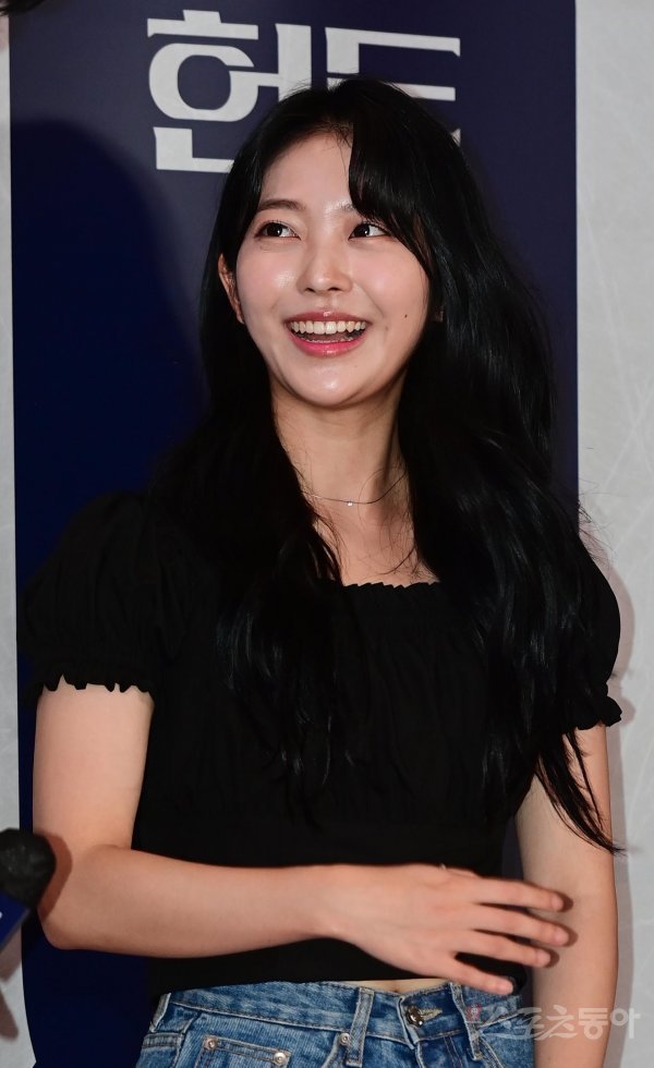 배우 홍승희가 2일 서울 강남구 삼성동 메가박스 코엑스점에서 열린 영화 ‘헌트’ VIP 시사회에서 포즈를 취하고 있다.
