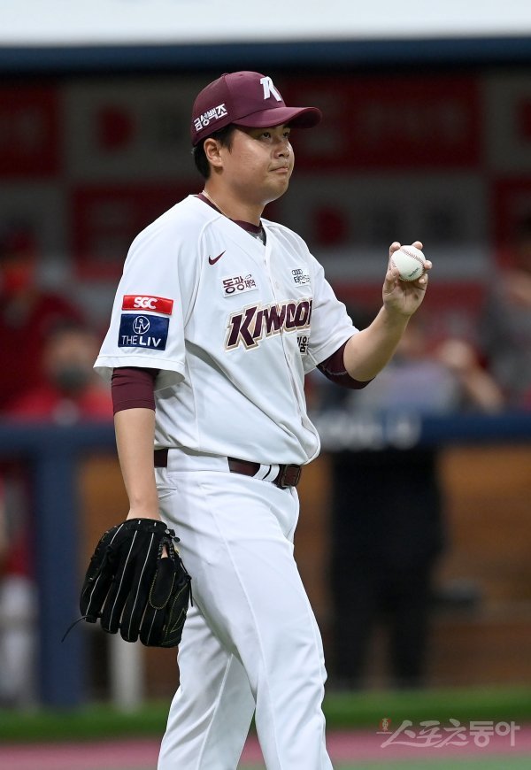 2일 서울 고척스카이돔에서 ‘2022 신한은행 MY CAR KBO리그’ SSG 랜더스와 키움 히어로즈 경기가 열렸다. 9회초 1사 만루 키움 이영준이 동점타를 허용한 후 아쉬워하고 있다.