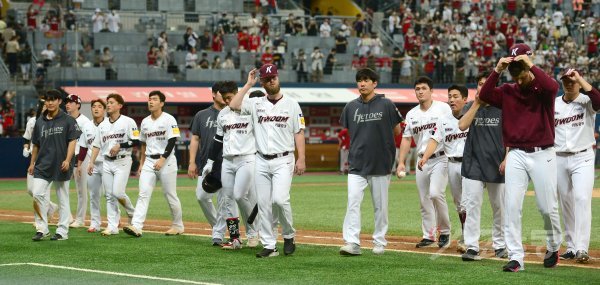 2일 서울 고척스카이돔에서 ‘2022 신한은행 MY CAR KBO리그’ SSG 랜더스와 키움 히어로즈 경기가 열렸다. 5-7로 패하며 4연패에 빠진 키움 선수들이 경기장을 바져나가고 있다.