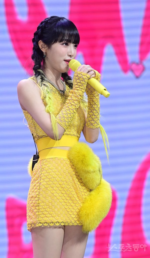가수 최예나가 3일 서울 광진구 광장동 예스24라이브홀에서 열린 두 번째 미니앨범 ‘SMARTPHONE‘ 발매 기념 프레스 쇼케이스에서 인사말을 하고 있다.
