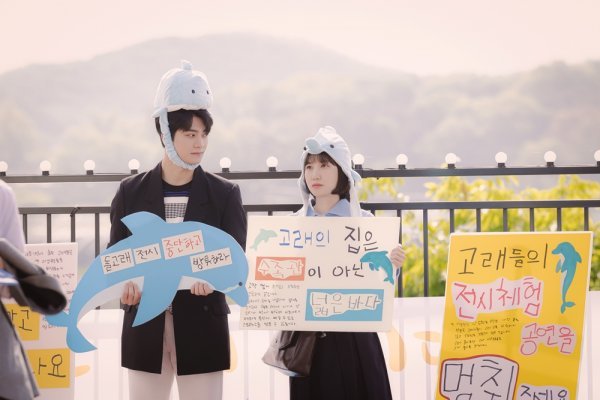 이날 제작진이 꽁개한 사진에는 세상 어디에도 없는 ‘기발한’ 데이트를 즐기는 우영우와 이준호 한때가 담긴다. 이준호 고백 이후 데이트를 통해 서로에 대해 알아가기로 한 우영우의 버킷리스트를 하나씩 이루기로 한 것. 먼저 아쿠아리움 데이트 대신 선택한 수족관 돌고래 해방 시위 현장이 눈길을 끈다. 돌고래 모자를 나란히 쓰고 진지하게 고래의 자유를 기원하는 우영우, 이와 달리 어색한 듯 눈치를 살피는 이준호의 대비된 모습이 시선을 끈다. 조깅 데이트에서는 우영우가 망태기를 메고 해맑게 달려오는 모습에 동공 지진을 일으키는 이준호의 표정 변화가 웃음을 유발한다. ‘우영우 표’ 엉뚱하고 기발한 데이트가 어떤 재미를 선사할까.