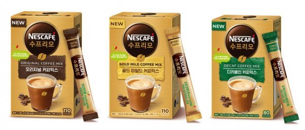 네스카페가 수프리모 대표 커피믹스 3종의 패키지 디자인을 전면 리뉴얼했다.