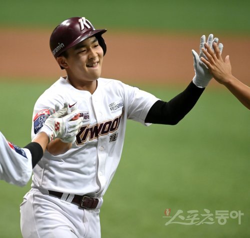 김휘집은 공수에서 어린선수답지 않은 플레이로 벌써 70경기 가깝게 1군 경험을 더 보탰다. 3일 고척 SSG 랜더스전에선 8회말 쐐기 솔로포를 때리는 등 알토란같은 활약을 거듭하고 있다. 그는 “유격수는 일단 좋은 수비가 가장 먼저 아닌가. 공격도 잘 하면 좋지만, 수비에서 안정적인 모습을 보이는 게 올해 내 목표다”고 말했다.