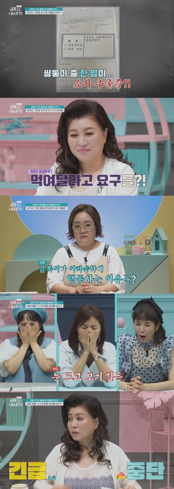 오는 5일 오후 방송되는 채널A ‘요즘 육아 – 금쪽같은 내새끼’에는 13살 쌍둥이 딸을 둔 엄마가 등장한다. 엄마는 첫째가 과거 온라인 그루밍에 휘말린 뒤, 지난해 10월 소아 우울증 중등도 진단을 받았다는 고민을 털어놓으며 출연 계기를 밝힌다.