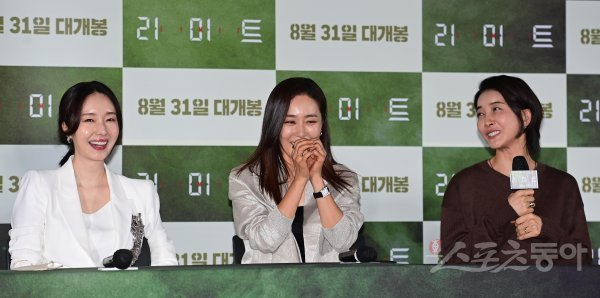 배우 이정현, 문정희, 진서연이 5일 서울 용산구 CGV아이파크몰점에서 열린 영화 ‘리미트’ 언론시사회에서 취재진의 질문에 답하고 있다.