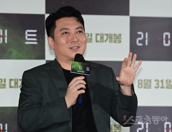 배우 박명훈이 5일 서울 용산구 CGV아이파크몰점에서 열린 영화 ‘리미트’ 언론시사회에서 취재진의 질문에 답하고 있다.