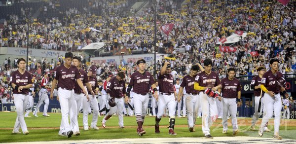 7일 서울 잠실야구장에서 ‘2022 신한은행 MY CAR KBO리그’ 키움 히어로즈와 LG 트윈스 경기가 열렸다. 0-5로 패하며 2연패를 당한 키움 선수들이 그라운드를 빠져나가고 있다.