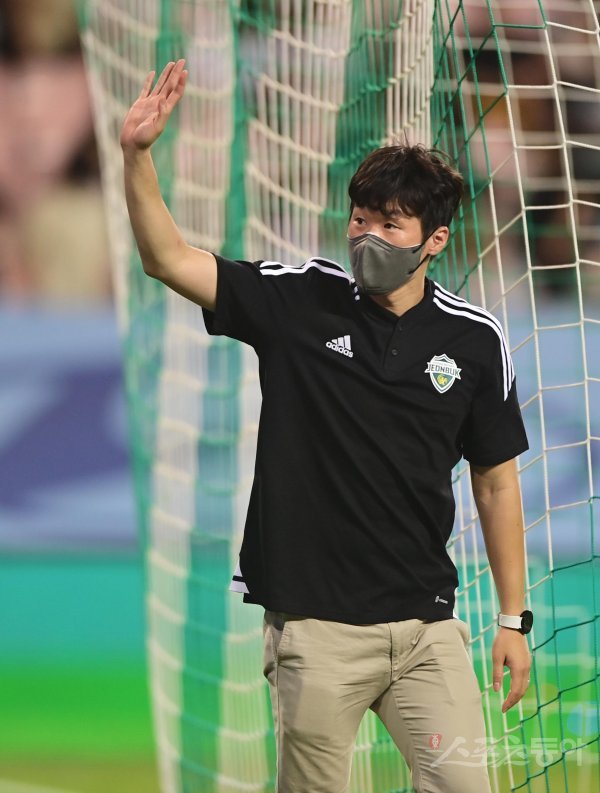 7일 전주월드컵경기장에서 열린 ‘하나원큐 K리그1 2022’ 전북 현대와 울산 현대의 경기에서 전북 박지성 어드바이저가 팬들에게 인사하고 있다.
