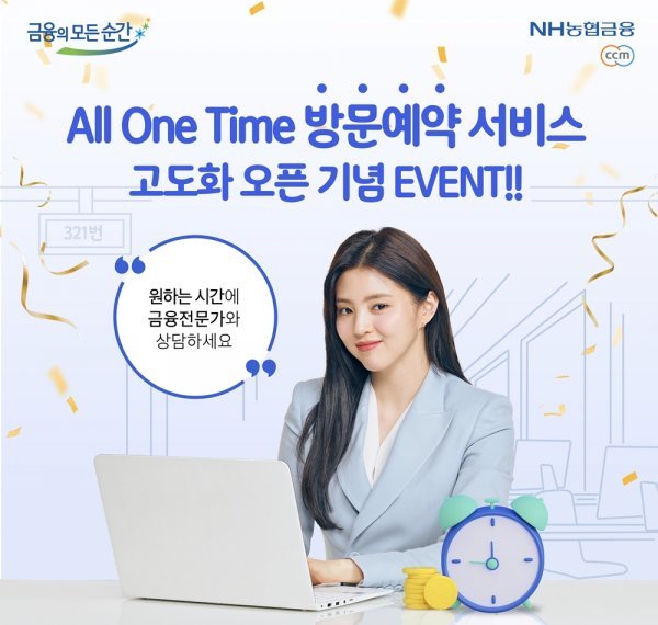NH농협은행이 ‘All One Time 방문예약 서비스’를 리뉴얼했다. 편리한 시간에 가까운 영업점에서 원하는 금융전문가와 상담 받을 수 있다. 모바일뱅킹을 통해 방문하고자 하는 영업점, 방문일자, 시간, 상담업무 예약을 신청하면 된다. 방문예약을 신청하면 카카오 알림톡이 발송되고 도착알림 버튼을 누르면, 영업점 상담직원에게 고객 방문이 실시간 통지돼 편리하게 상담 받을 수 있다. 또 맞춤형 상담을 위한 사전 상담표와 고객과의 소통 및 개선의견 수렴을 위한 만족도 조사를 신설했다.
