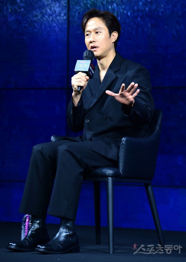 9일 서울 동대문구 JW메리어트 동대문에서 열린 넷플릭스 오리지널 ‘모범가족’ 제작발표회에 참석한 정우가 출연 소감을 밝히고 있다.‘모범가족’은 파산과 이혼 위기에 놓인 평범한 가장 ‘동하’가 우연히 죽은 자의 돈을 발견하고 범죄 조직과 처절하게 얽히며 벌어지는 범죄 스릴러 이야기다.