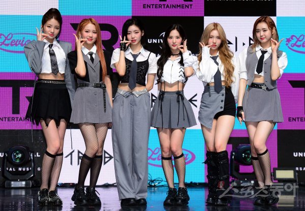 걸그룹 트라이비 켈리, 지아, 현빈, 송선, 소은, 미레가 9일 오후 서울 노들섬 라이브하우스에서 열린 세 번째 싱글앨범 ‘레비오사(LEVIOSA)’ 컴백 쇼케이스에 참석해 포즈를 취하고 있다.
