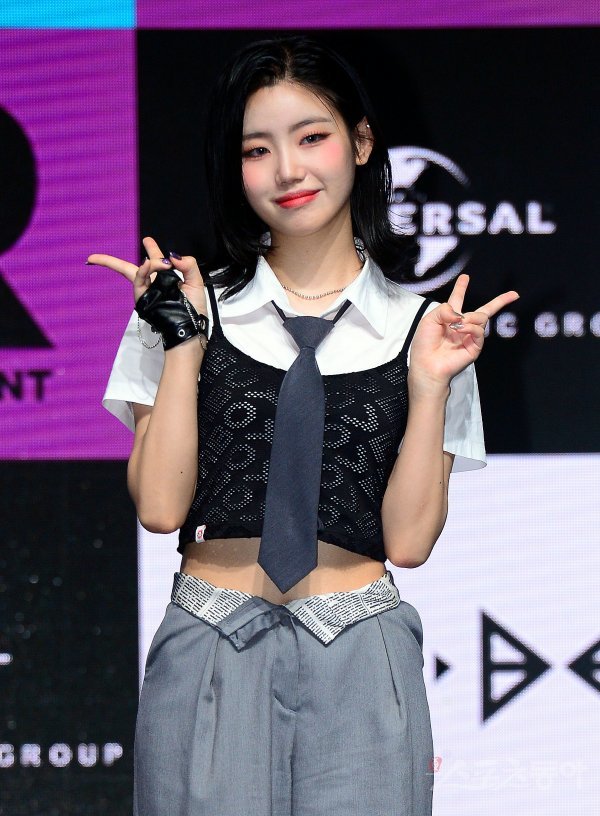 걸그룹 트라이비 현빈이 9일 오후 서울 노들섬 라이브하우스에서 열린 세 번째 싱글앨범 ‘레비오사(LEVIOSA)’ 컴백 쇼케이스에 참석해 포즈를 취하고 있다.