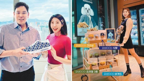 정용진 신세계 부회장과 포즈를 취한 모습(왼쪽)과 ‘랩 오브 파리바게뜨’를 방문해 ‘파바DOG’을 구매하고 있는 와이티.정용진
