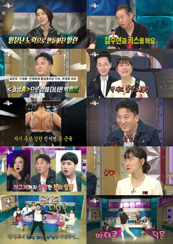 영화 ‘기생충’의 히든카드 캐릭터를 완벽하게 소화해 낸 박명훈은 댄스면 댄스 연기면 연기 주저 없이 선보이는 화끈한 매력으로 4MC와 시청자들을 무장해제 했다. 4MC의 멘트를 깨알 소화하며 예능감을 자랑하더니, 개봉을 앞둔 영화 ‘리미트’ 흥행 공약을 선공개하고 후에 흥행을 바라는 열정을 뽐냈다. 또 봉준호 감독이 인정한 닮은꼴 장동건 외에도 김숙, 황제성 등 분야별 ‘박명훈 닮은꼴’이 줄이어 등장해 폭소를 자아냈다.