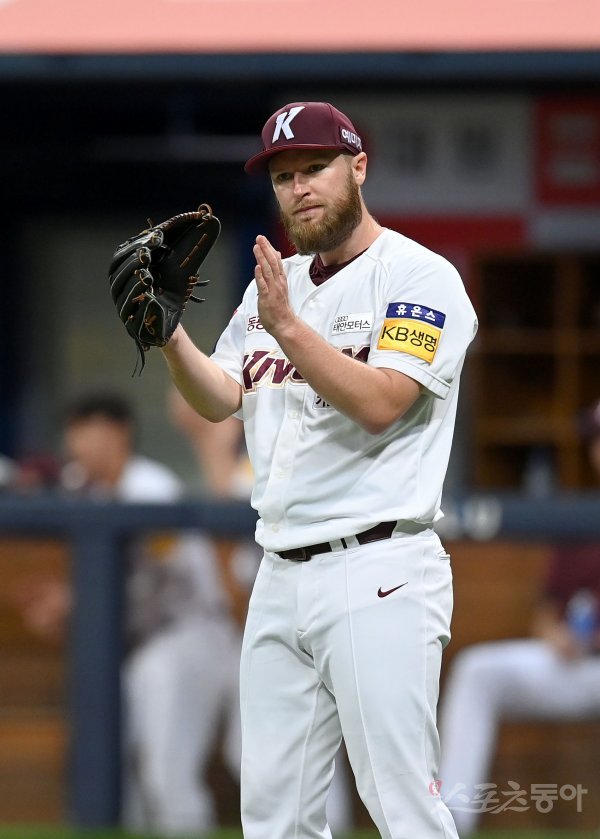 11일 서울 고척스카이돔에서 ‘2022 신한은행 MY CAR KBO리그’ 롯데 자이언츠와 키움 히어로즈 경기가 열렸다. 선발 투수로 등판한 키움 요키시가 6회초 1사 1루 상황에서 병살타로 이닝을 마무리한 후 박수를 치고 있다.