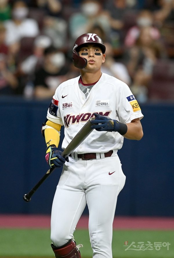 11일 서울 고척스카이돔에서 ‘2022 신한은행 MY CAR KBO리그’ 롯데 자이언츠와 키움 히어로즈 경기가 열렸다. 1회말 1사 1루 키움 이정후가 삼진 아웃을 당한 후 아쉬워하고 있다.