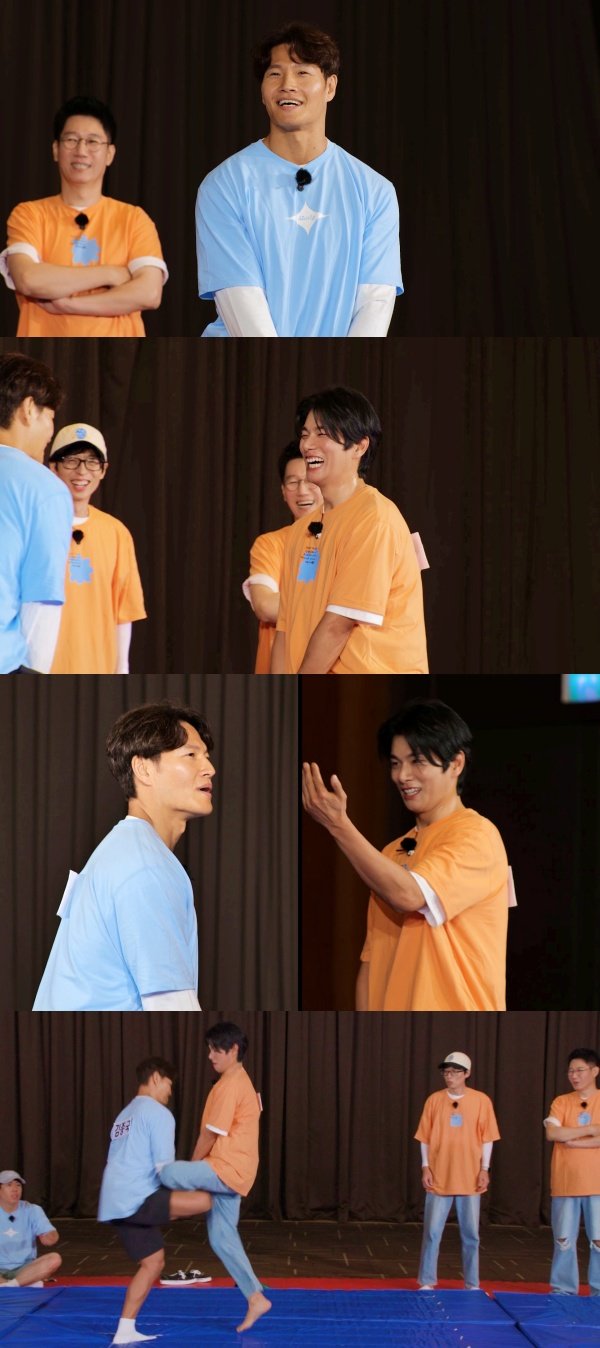 이이경은 김종국에게 “1대1로 붙자”라며 도발했고, 김종국은 “영웅 되고 싶어 하는 이이경을 눌러줘야 된다”라며 도전장을 받아들였다. 이에 유재석은 “김종국은 본인 외에 영웅 되는 걸 못 본다”라며 김종국의 승부욕을 자극했고 이어서 두 사람의 신경전과 체력전이 시작됐다. 이에 송지효는 ”종국 오빠, 안돼!“라며 김종국을 걱정했고, 멤버들 역시 “큰일 났다“라며 손에 땀을 쥐게 하는 예측불허 승부가 펼쳐졌다.