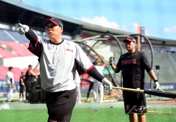 16일 서울 잠실야구장에서 ‘2022 신한은행 MY CAR KBO리그’ 삼성 라이온즈와 LG 트윈스 경기가 열린다. LG 김현수가 유강남에게 타격에 대해 조언하고 있다.