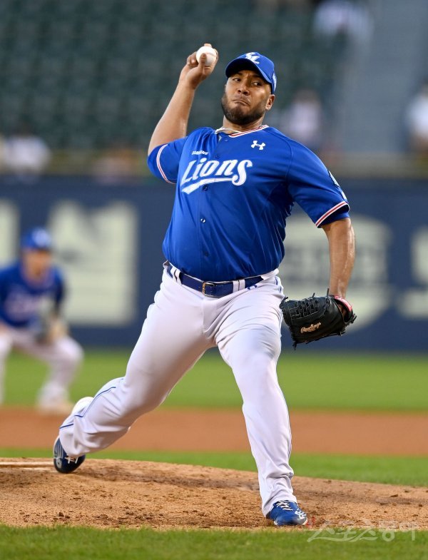 16일 서울 잠실야구장에서 ‘2022 신한은행 MY CAR KBO리그’ 삼성 라이온즈와 LG 트윈스 경기가 열렸다. 선발 투수로 등판한 삼성 수아레즈가 역투하고 있다.