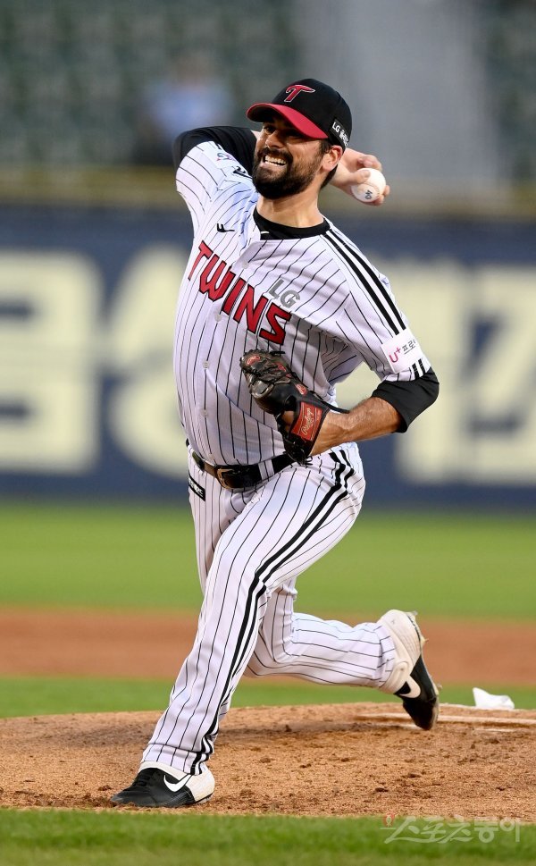 16일 서울 잠실야구장에서 ‘2022 신한은행 MY CAR KBO리그’ 삼성 라이온즈와 LG 트윈스 경기가 열렸다. 선발 투수로 등판한 LG 플럿코가 역투하고 있다.