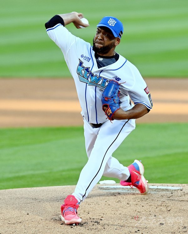 16일 경기도 수원 kt위즈파크에서 ‘2022 신한은행 SOL KBO리그’ kt 위즈와 키움 히어로즈의 경기가 열렸다. kt 선발투수 데스파이네가 힘차게 볼을 던지고 있다.