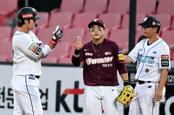 16일 경기도 수원 kt위즈파크에서 ‘2022 신한은행 SOL KBO리그’ kt 위즈와 키움 히어로즈의 경기가 열렸다. 3회말 1사 1, 2루에서 kt 박병호가 1타점 적시타를 날린 후 환호하고 있다.