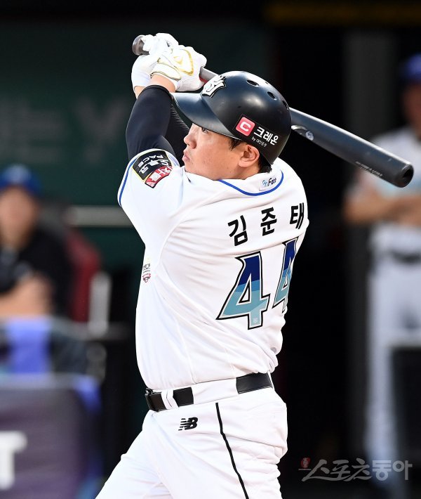 16일 경기도 수원 kt위즈파크에서 ‘2022 신한은행 SOL KBO리그’ kt 위즈와 키움 히어로즈의 경기가 열렸다. 2회말 2사 3루에서 kt 김준태가 1타점 2루타를 날리고 있다.