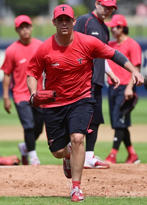 17일 광주기아챔피언스필드에서 열린 ‘2022 신한은행 SOL KBO리그’ KIA 타이거즈와 SSG 랜더스의 경기에 앞서 KIA 놀린이 수비 훈련을 하고 있다.