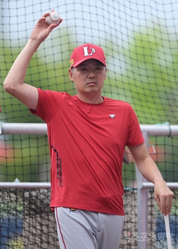 17일 광주기아챔피언스필드에서 열린 ‘2022 신한은행 SOL KBO리그’ KIA 타이거즈와 SSG 랜더스의 경기에 앞서 SSG 김원형 감독이 볼을 정리하고 있다.